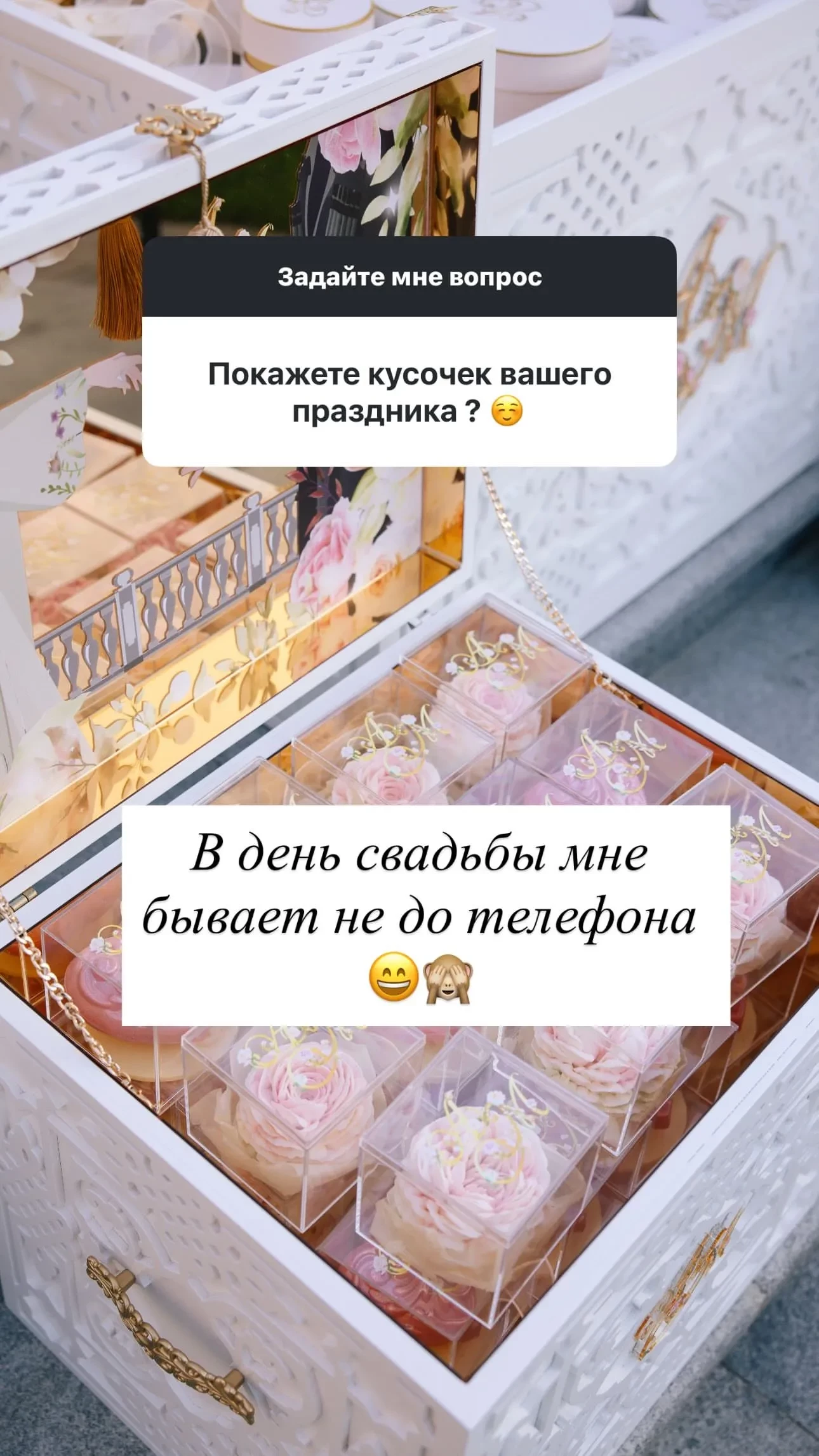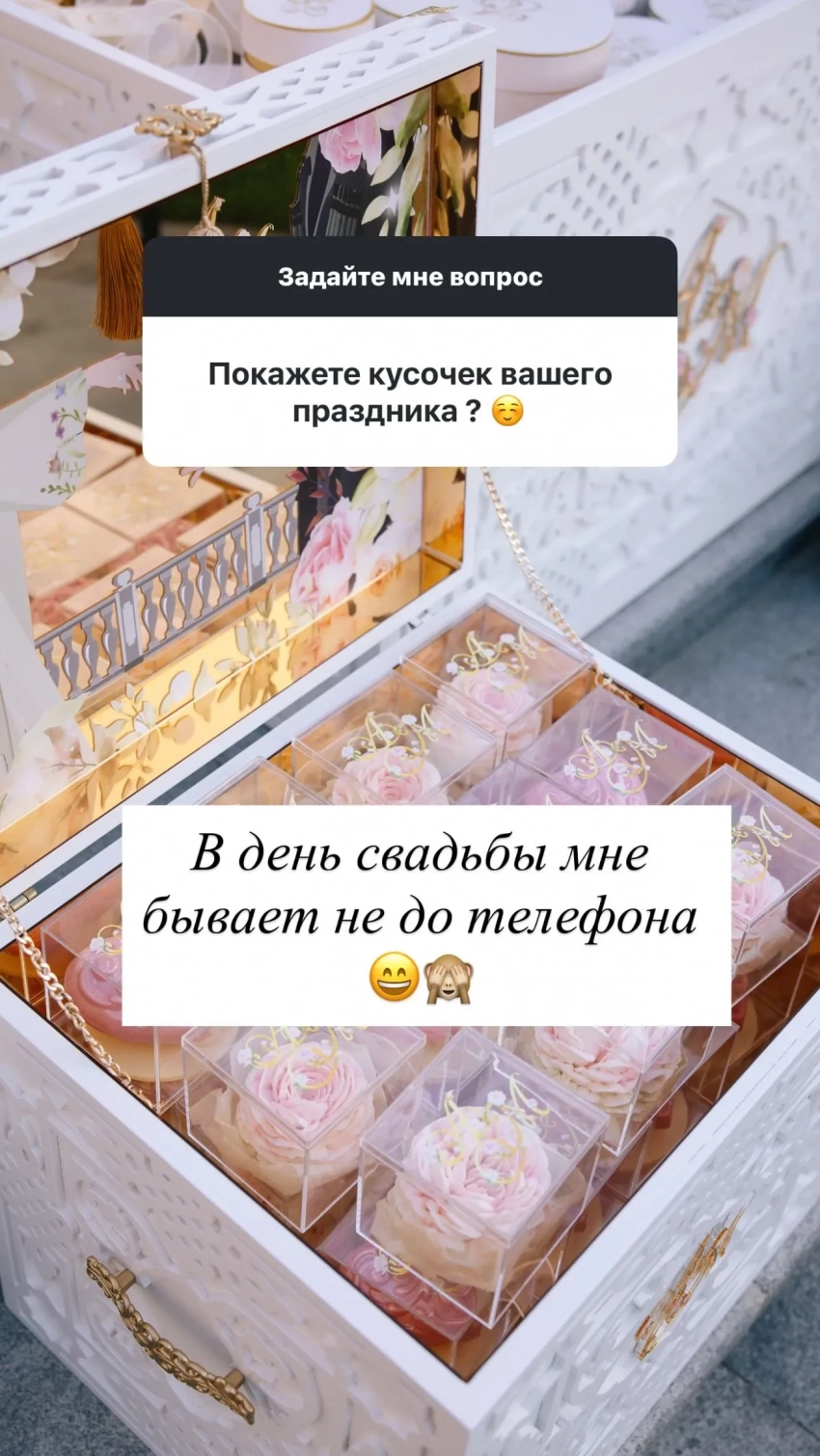 Айшат опубликовала несколько снимков и ответила на вопросы подписчиков. Она рассказала, что свадьба пройдёт в родном селе Кадыровых – Ахмат-Юрте. Также она отметила, что в день свадьбы ей "не до телефона", поэтому она не сможет показать фотографии. Айшат рассказала, что невесту зовут Медни и она из того же села. Она также рассказала, что видео никаких не будет, так как "таково желание родителей", однако свой образ она обещала показать. Больше подробностей Айшат не раскрыла, а только добавила, что её брат счастлив.