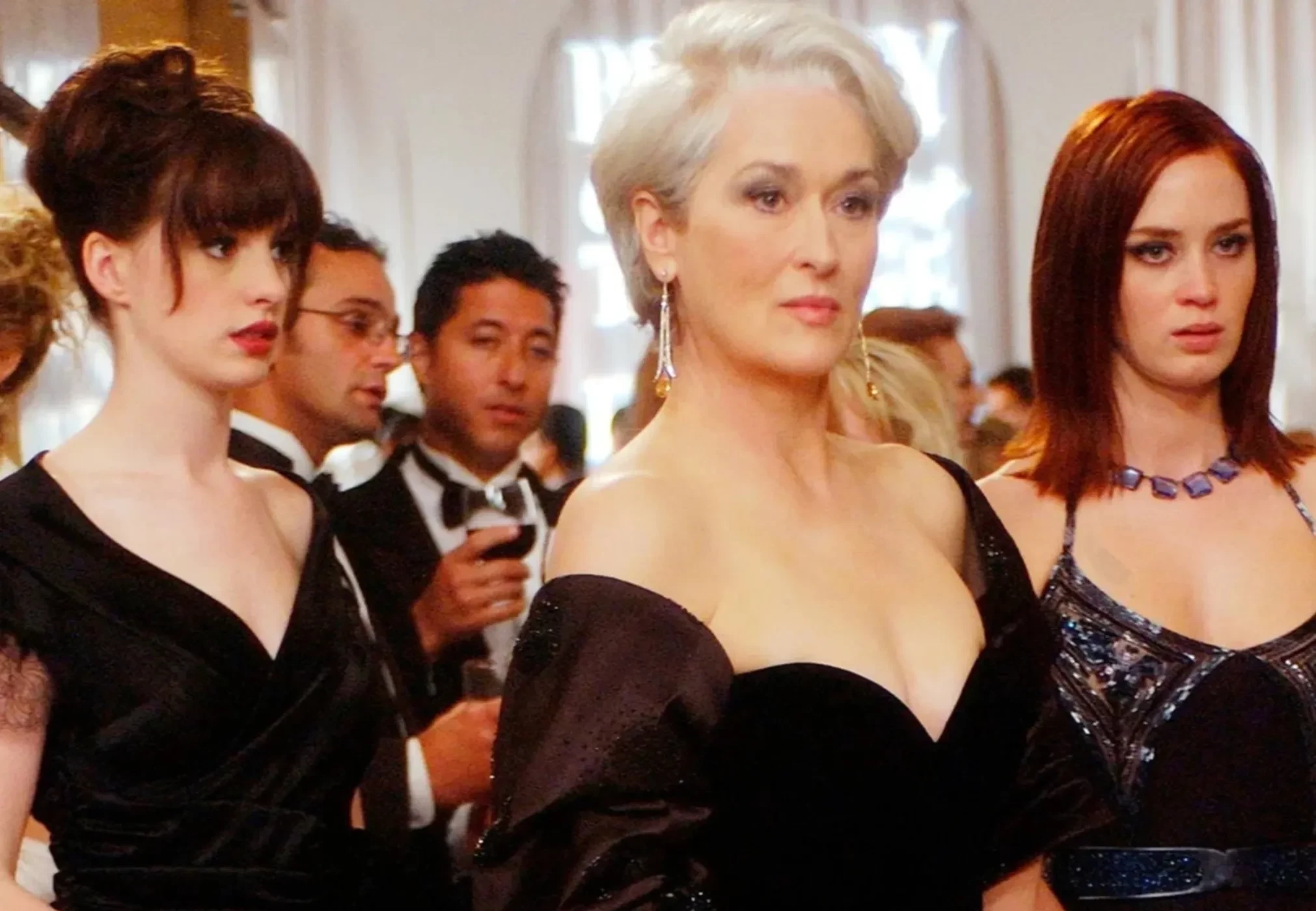 Энн Хэтэуэй, Мэрил Стрип, Эмили Блант в фильме "Дьявол носит Prada"