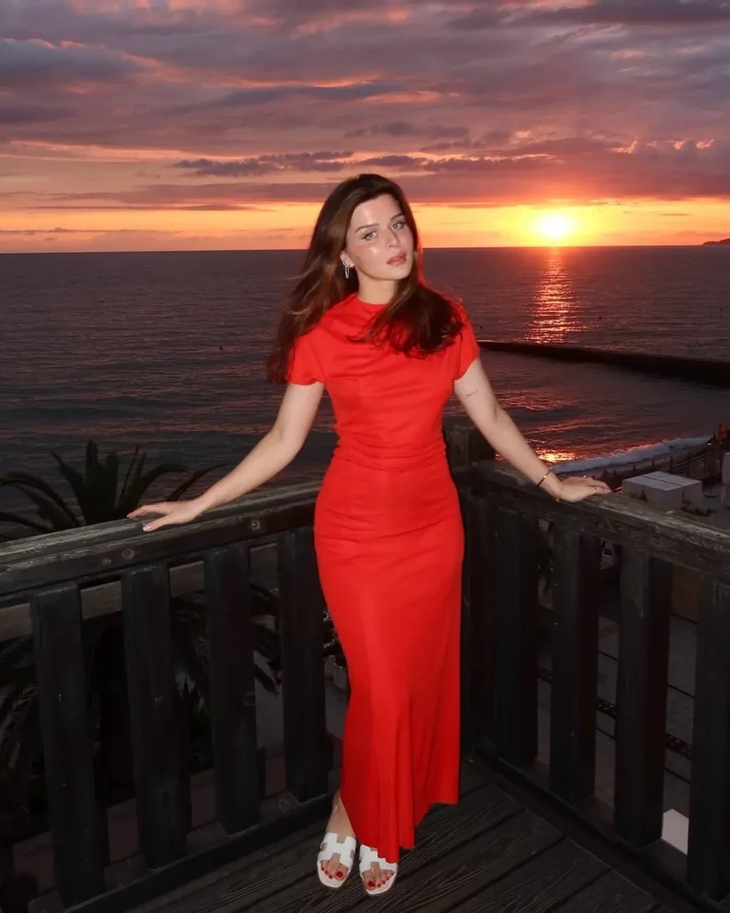 Тина Канделаки показала редкое фото дочери в своём инстаграме*. На снимке 25-летняя Мелания в обтягивающем красном платье позирует на фоне моря. Тина не стала никак подписывать фото и раскрывать повод, по которому показала дочь, ограничившись лишь эмодзи в виде чёрного сердца.