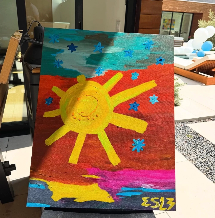 Работа Евгения ШвидлераОдна из последних работ Швидлера стала предметом отдельного обсуждения: картина в духе примитивизма напомнила комментаторам оформление детской комнаты. Это породило догадки, что полотно могло быть создано специально для Марка — первенца Евгения и Надежды, с которой они только несколько месяцев сыграли свадьбу. Недавно Оболенцева опубликовала первое фото сына, а в сети тем временем уже появились слухи о том, что она якобы ждёт второго ребёнка.