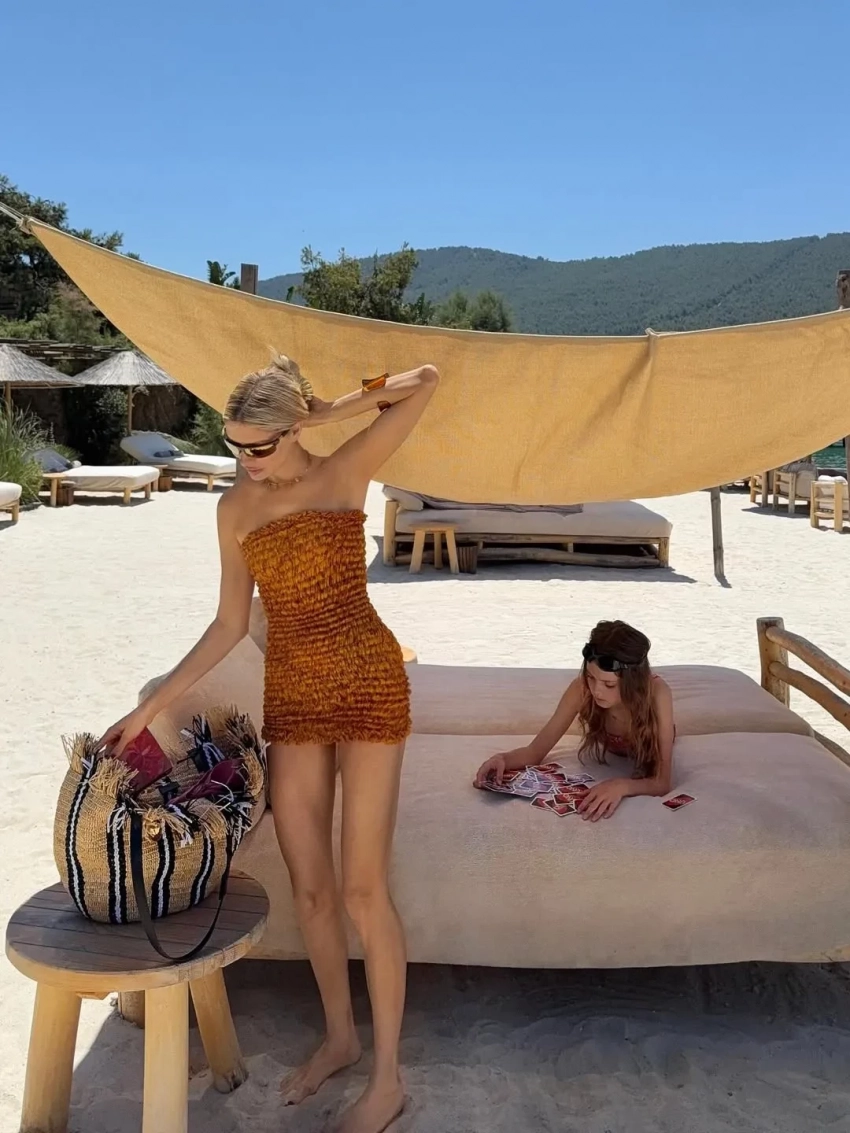 52-летняя Хайди Клум наслаждается обществом 35-летнего мужа Тома Каулитца и, как обычно, купается топлес. Анна Седокова исследует ночную жизнь острова Фишер-Айленд недалеко от Майами, а Ольга Карпуть с мужем Павлом Тё и тремя детьми отдыхают на Ибице.