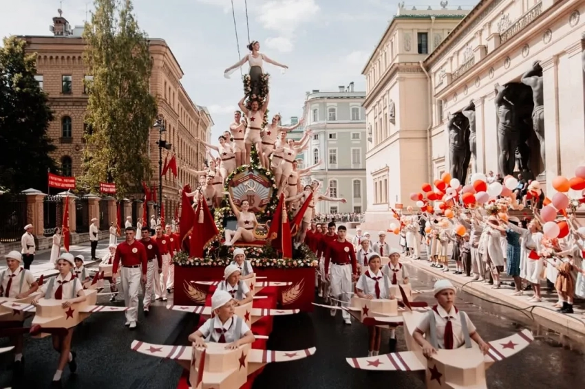 Новый фильм Учителя посвящён композитору Дмитрию Шостаковичу. В первой сцене, которую снимали в центре Санкт-Петербурга, режиссёр воссоздал парад физкультурников 1930-х годов, где на вершине пирамиды возвышается Полина Цыганова. Никита Кологривый сыграл в картине композитора Бориса Тихонова, а роль самого Шостаковича досталась Олегу Савцову.