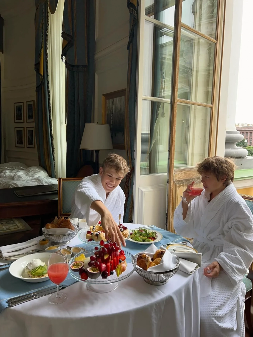 На снимках модель позирует в отеле, как одна, так и с детьми. Также Перминова добавила несколько кадров с прогулки на катере по Неве. "Питер правда ассоциируется с летом в нашей семье. Удивительно, как самый дождливый город всегда встречает нас солнцем. Гуляли, спали до обеда, ели пиццу по ночам. На каникулах мы отрываемся", — подписала 38-летняя Перминова фотографии.