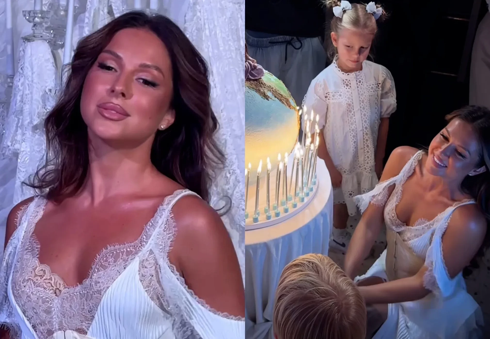 "Белая" вечеринка, кружевные наряды и поздравление от бывшего мужа: певица Нюша отметила 35-летие вместе с детьми