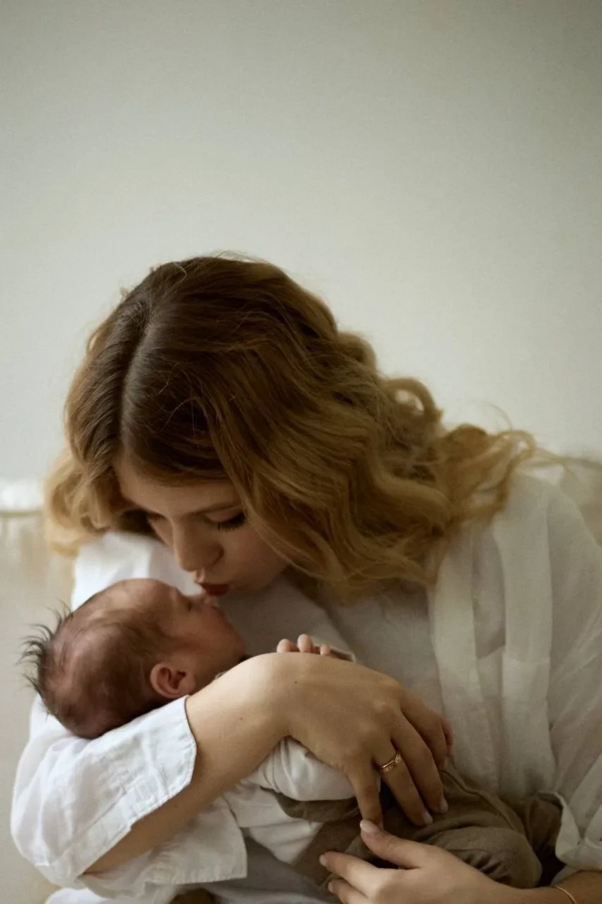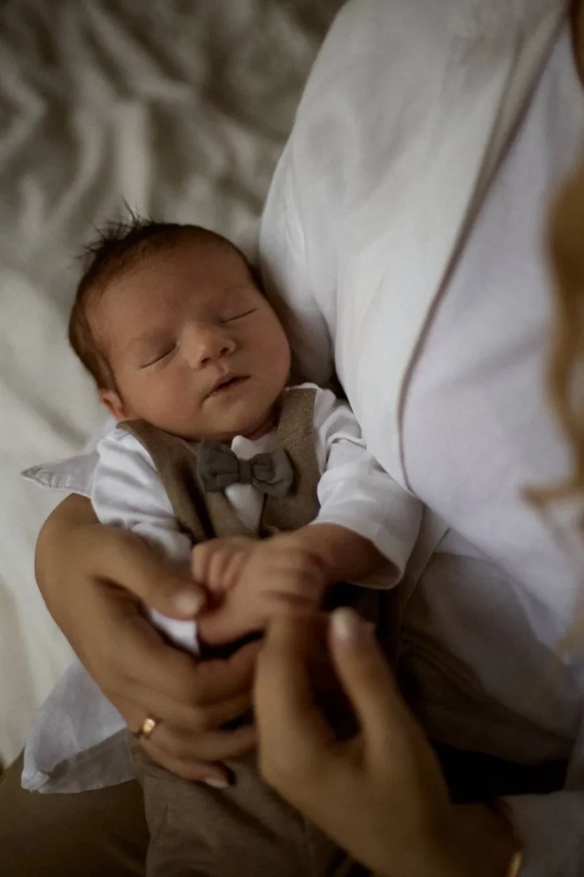 "Наша первая фотосессия с Мишей", — подписала Александра фото, на которых она позирует с новорождённым ребёнком.