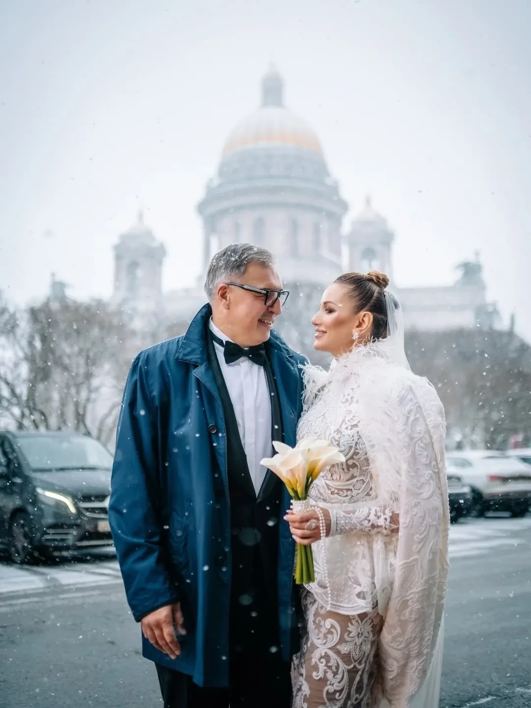 Невеста была в платье от дизайнера Александра Сирадекиана. Бракосочетание прошло в популярном среди селебрити Дворце бракосочетания № 1 на Английской набережной Санкт-Петербурга. Молодожёны также устроили фотосессию в местном пятизвёздочном отеле "Астория" и посетили храм.