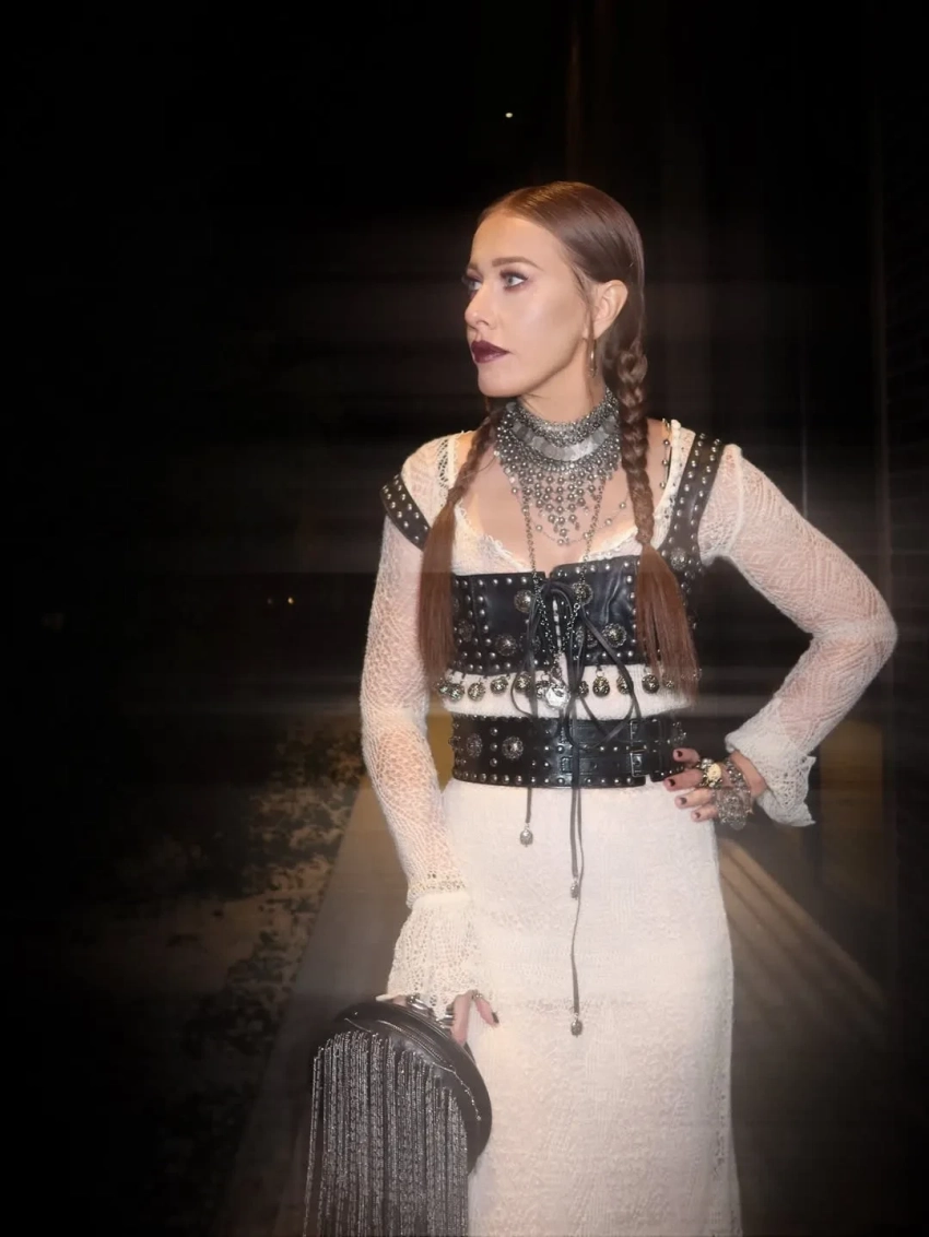 Косы, кожа и металл. Ксения Собчак примерила образ "готической снегурочки"