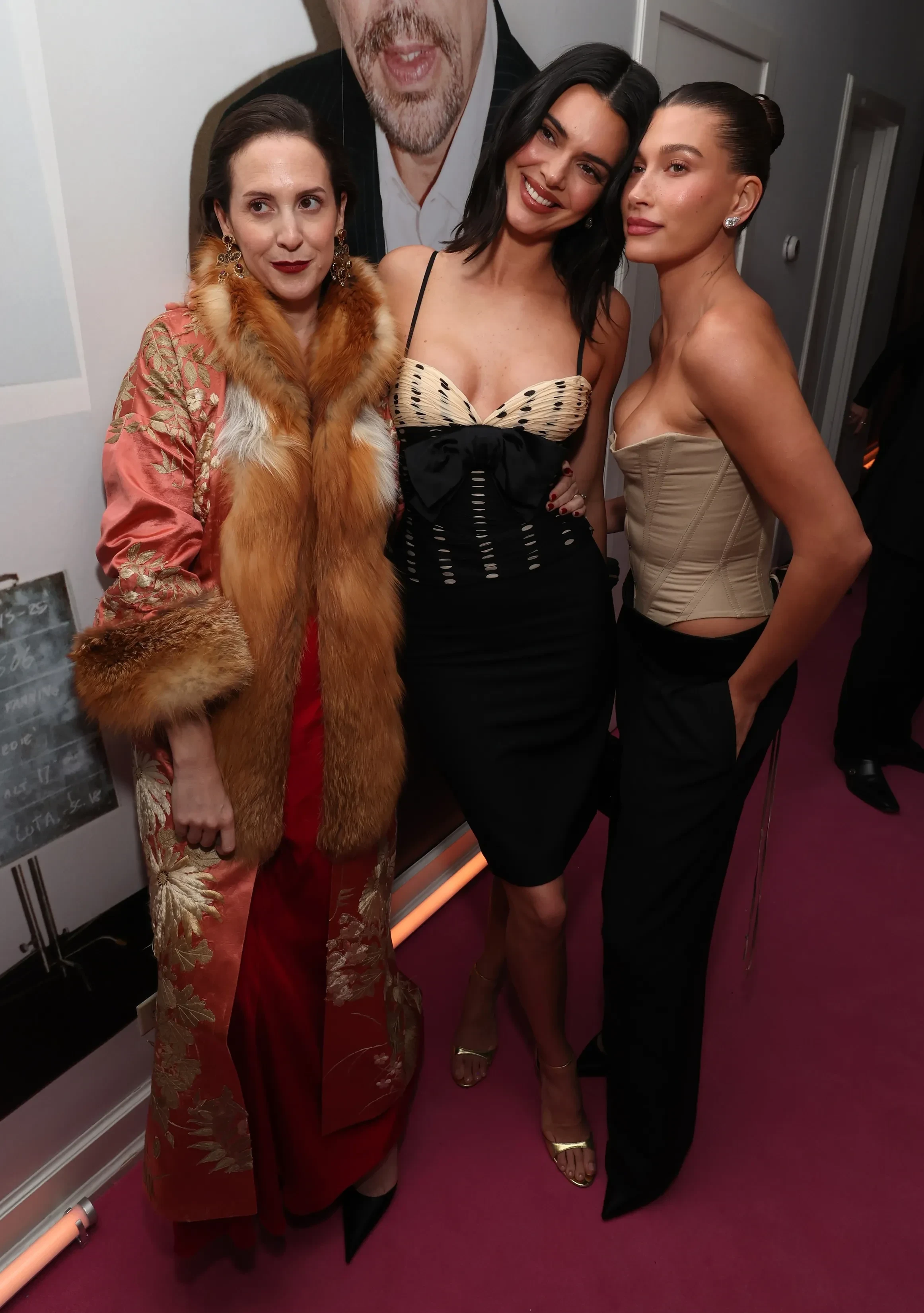 56-летняя Дженнифер Лопес пришла на вечеринку в блестящем бордовом платье и шубе в тон, а Хейли Бибер надела бежевый корсет с брюками. 37-летняя Эмма Стоун блистала в полупрозрачной юбке и чёрной блузе, а 28-летняя Сидни Суини вышла в свет в более "закрытом" платье, чем все привыкли. Кейт Хадсон появилась в белом кружевном платье с декольте, а 59-летняя Синди Кроуфорд и её дочь Кайя Гербер позировали в образах total black.