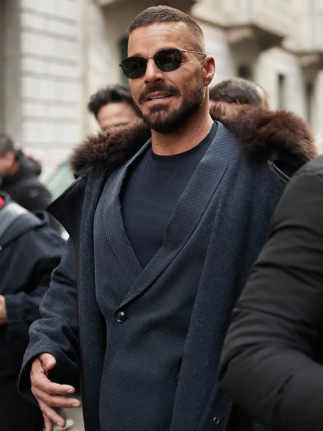 54-летний Рики Мартин для редкого выхода в свет выбрал костюм бренда и пальто с мехом в тон, а 52-летняя частая гостья модных показов Оксана Бондаренко пришла в кожаном пальто.