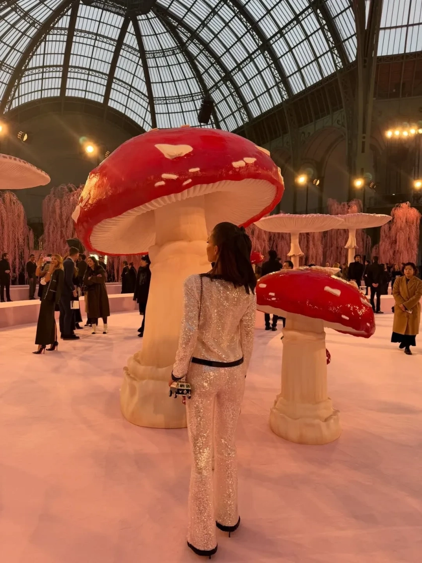 Жена владельца издательства "Эксмо" Олега Новикова и бывшая участница реалити-шоу "Дом 2" Инесса Шевчук решила покорить Неделю моды в этом сезоне. Она сходила на шоу Schiaparelli и Yanina, а также попала на Chanel и Zuhair Murad. Ксения Чилингарова тоже была среди гостей на показе Chanel, куда она пришла в зелёном парике.