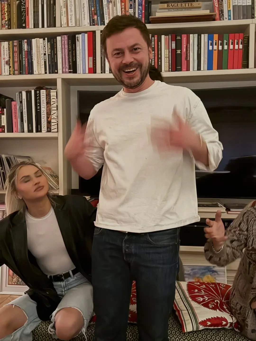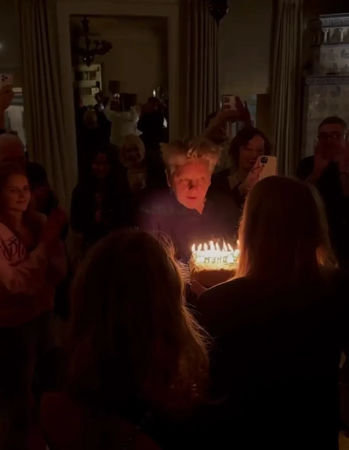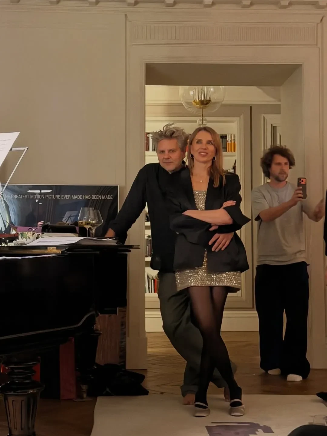 57-летняя Бондарчук на день рождения мужа надела серебристое мини-платье с чёрными колготками и балетками. На празднике именинник и гости танцевали под "народные" хиты "Матушка-земля" и "Эх, раз, да ещё раз", угощались салатом "Шуба" и бутербродами с колбасой и много фотографировались.