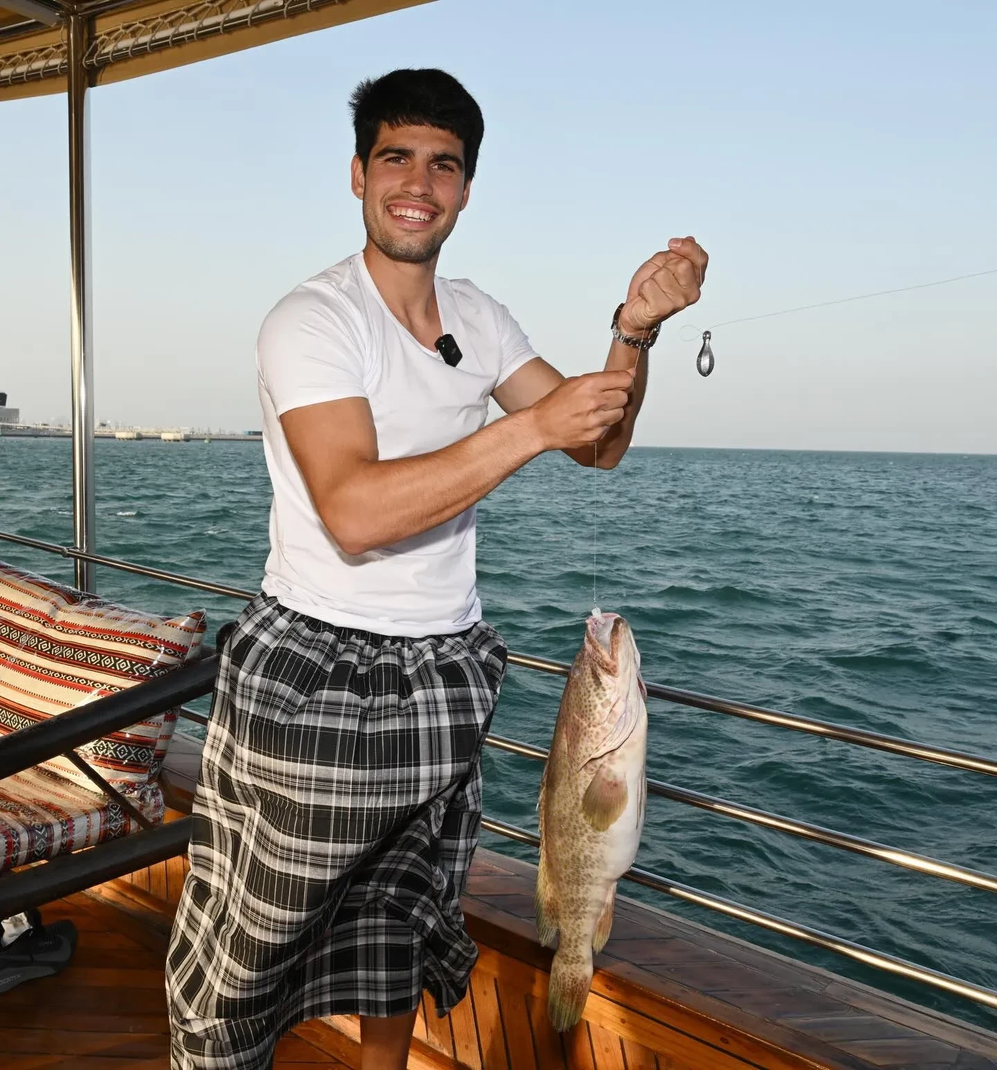 Перед тем как спортсменам провели инструктаж, они облачились в одинаковые наряды из белых футболок и клетчатых фут (мужская юбка, распространённая в арабских странах. — Прим. ред.). В противовес страстям на корте, улов удался у всех. "Это не ИИ, а просто парни, которые рыбачат в старом добром катарском стиле", — с юмором подписали организаторы пост.