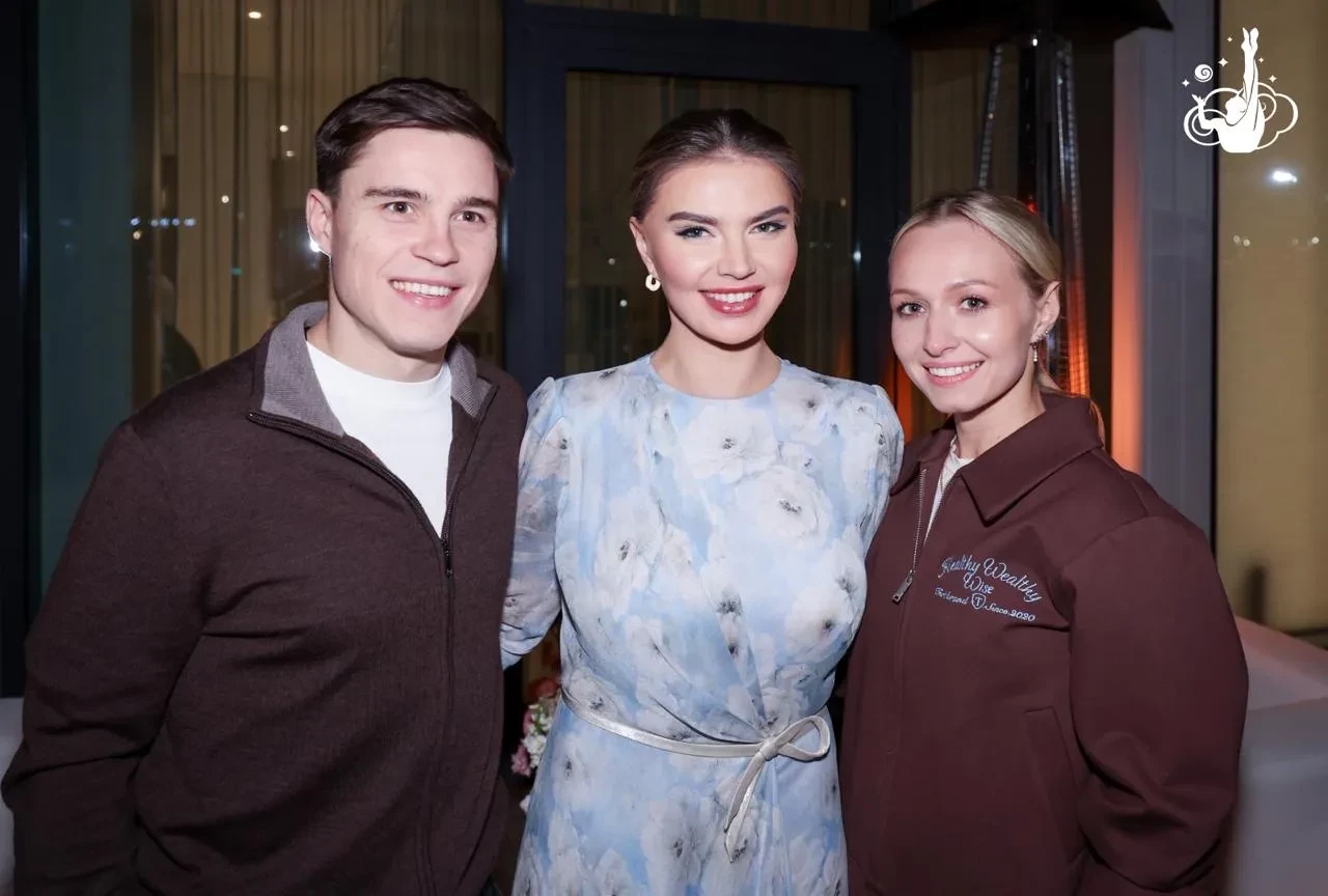 В один из дней 41-летняя Кабаева появилась на публике в ярко-красном брючном костюме. В другой раз она выбрала платье нежно-голубое платье с цветочным принтом. На одном из снимков экс-спортсменка позирует с сёстрами-фигуристками Диной и Ариной Авериными.