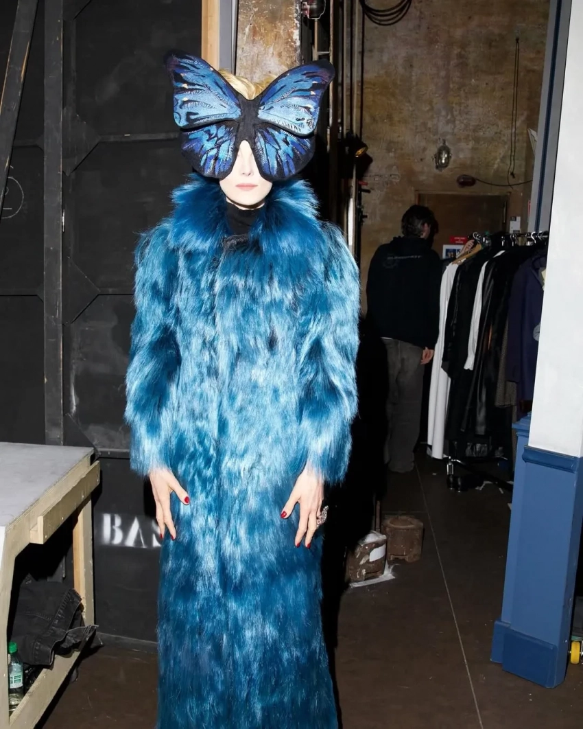 58-летняя Рената Литвинова опубликовала снимки своего нового образа для спектакля "Священное чудовище", который накануне прошёл в Париже. На закулисных кадрах главная героиня и режиссёр пьесы позирует в синей шубе и головном уборе в форме бабочки авторства бывшего креативного директора Balenciaga Демны Гвасалии, который разработал разные костюмы для каждого показа пьесы.