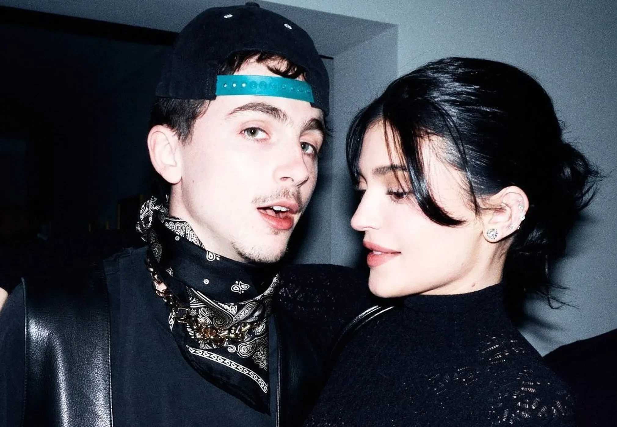 Кайли надела прозрачное чёрное кружевное платье, а Тимоти выбрал чёрную футболку, кожаный жилет и бандану. На совместном снимке пара обнималась и выглядела счастливой.
