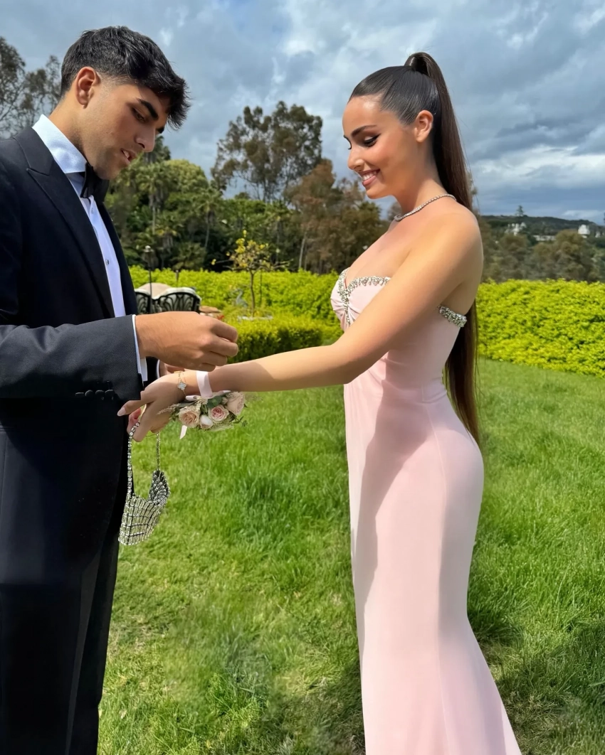На фотографиях Худякова предстала в розовом платье в пол. Образ она дополнила украшениями и сумочкой со стразами. Также она добавила несколько снимков, как её партнёр делал ей promposal (предложение пойти вместе на выпускной): он подарил ей несколько букетов роз и выложил сердце из лепестков. "Выпускной бал и предложение пойти на выпускной", — подписала Худякова фотографии.