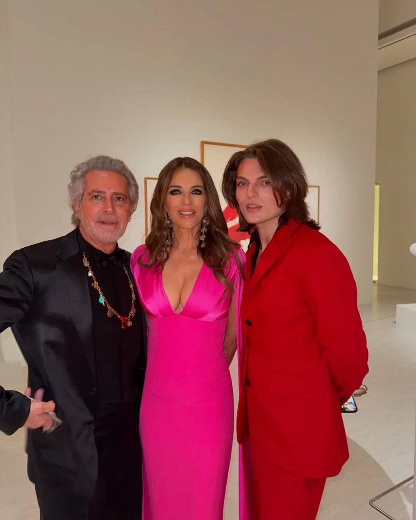 Карлос Соуза и Наталья ВодяноваЭкспозиция посвящена красному цвету, на ней представлены 30 предметов искусства и 50 легендарных моделей Valentino, создававшихся на протяжении пяти десятилетий. Также выставку посетила 59-летняя актриса Элизабет Хёрли с сыном Дэмианом.