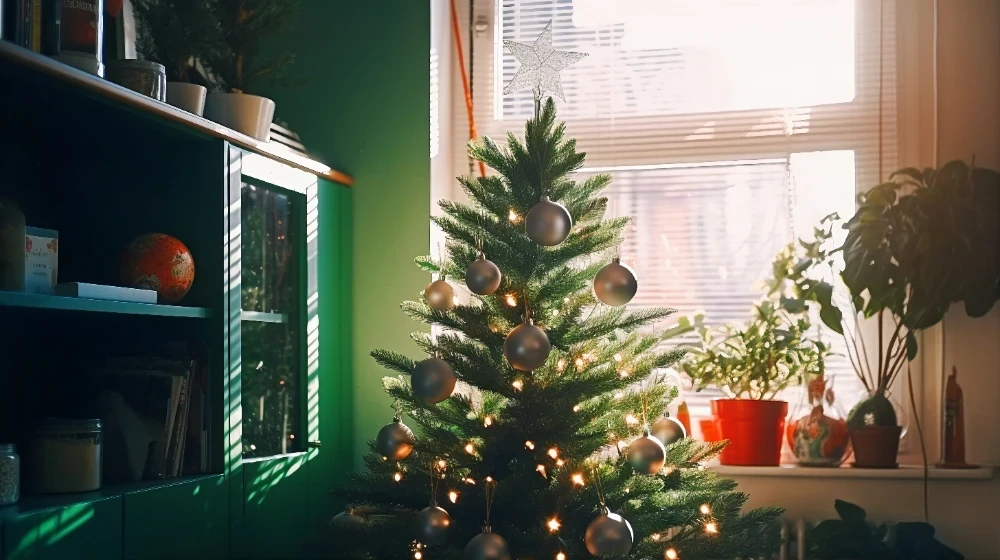 • Не ставьте елку в слишком жарком помещении, даже с растворами — это ускоряет осыпание хвои.