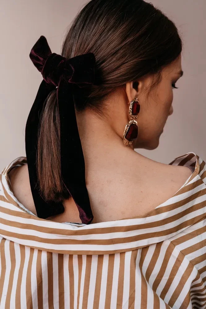 Высокий или низкий хвост можно превратить в стильную lived-in прическу. Волосы собираются небрежно, затем из хвоста и на макушке вытягиваются несколько прядей, а сам хвост слегка «пожамкивается» руками для добавления текстуры и объема.
