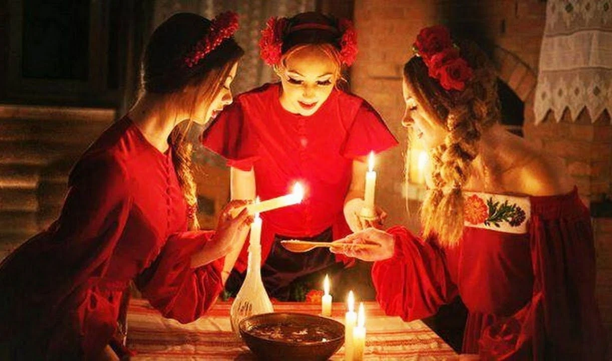 Это мистическое гадание из разряда гоголевских историй. Девушка накрывает стол в пустой комнате, расставляет посуду (кроме ножа и вилки) и остается одна. По поверью, должны раздаваться стук и вой ветра — это знак, что рядом с ней появляется суженый.