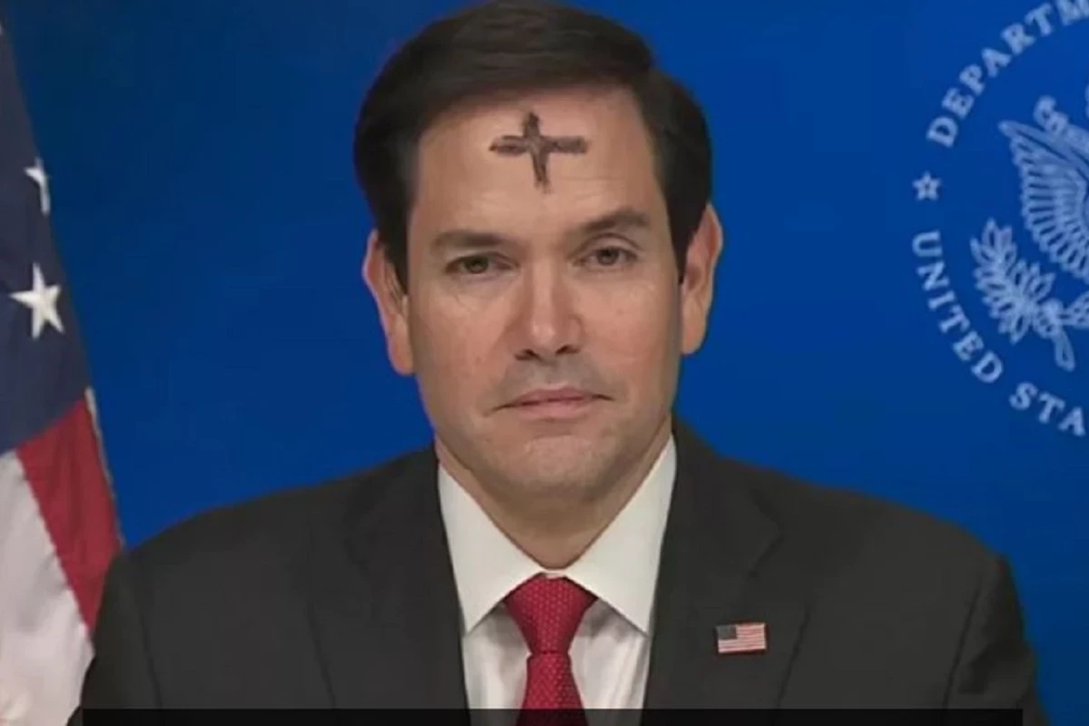Госсекретарь США дал интервью в прямом эфире журналистам прореспубликанского телеканала Fox News. С журналистами он беседовал с начерченным на лбу «пепельным крестом». Никакой мистики в этом нет. Рубио дал понять американцам, что посетил мессу в Пепельную среду. Сам же знак означает начало Великого поста и ожидание светлого Воскресенья Христова.